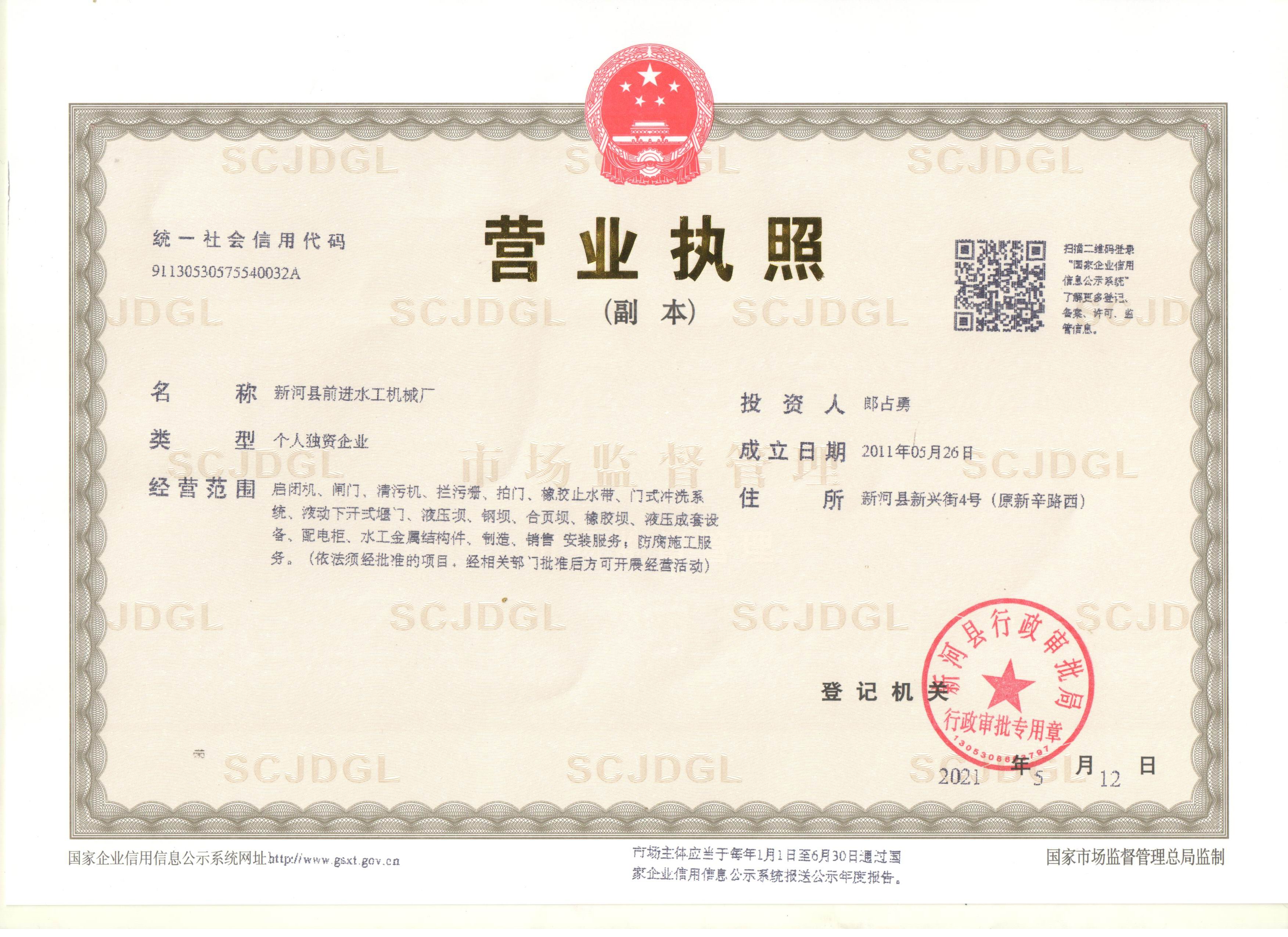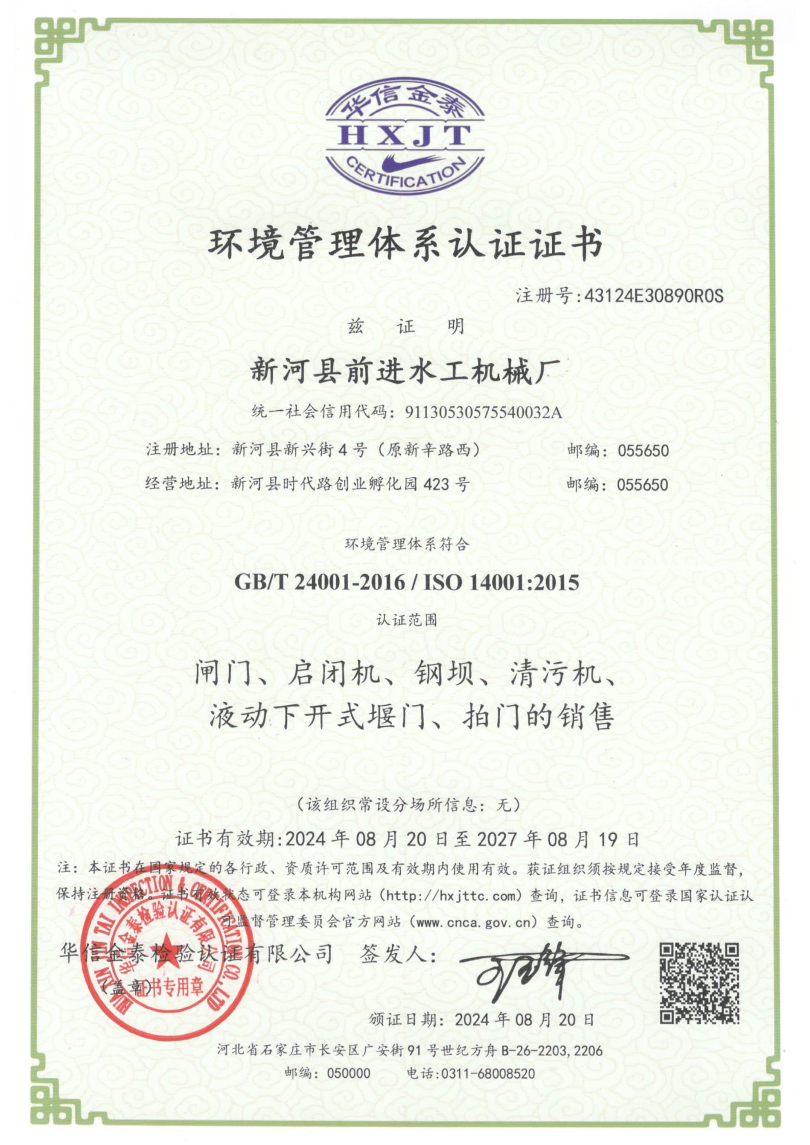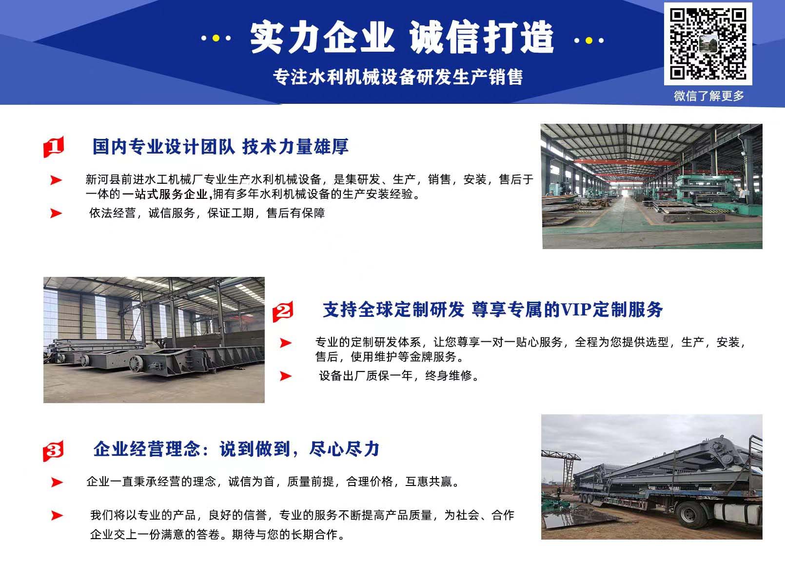 新河縣前進(jìn)水工機(jī)械廠是一家專門從事水利工程設(shè)備研發(fā)生產(chǎn)的廠家,現(xiàn)有員工228人,各類高、中級專業(yè)工程技術(shù)人員近30人,技術(shù)生產(chǎn)工人180多人。公司占地面積14674平方米。公司擁有車、鉗、刨、銑、冷作、鈑金、鑄造等,工種齊全,加工能力和技術(shù)力量雄厚,并具備理化測試手段與儀器設(shè)備。前進(jìn)水工專注景觀閘門,鋼壩,合頁壩,液壓升降壩,液壓閘門,臥倒門,一字門,人字門,液壓啟閉機(jī),卷揚(yáng)啟閉機(jī),螺桿啟閉機(jī),清污機(jī),除污機(jī),閘門,拍門等設(shè)備的研發(fā)與生產(chǎn),是新河水利工程產(chǎn)品行業(yè)的領(lǐng)跑者,不僅在同行業(yè)群中揭起了一次又一次的技術(shù)革新,更為水利工程企業(yè)提供了更高更大的選擇平臺。